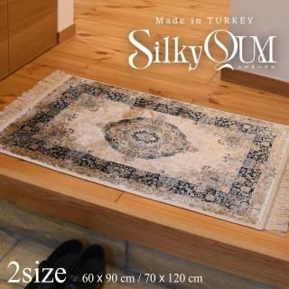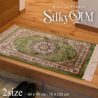 高級感あふれるマットが空間を華やかに彩ります。シルクのような光沢、なめらかで柔らかい質感の高級レーヨン糸で緻密なペルシャ絨毯柄を織り上げました。