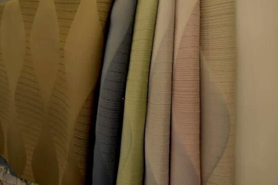 やわらかな印象の波線模様が、カーテンのヒダにアクセントを加えモダンな印象を付けます。