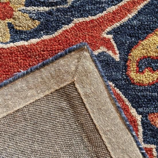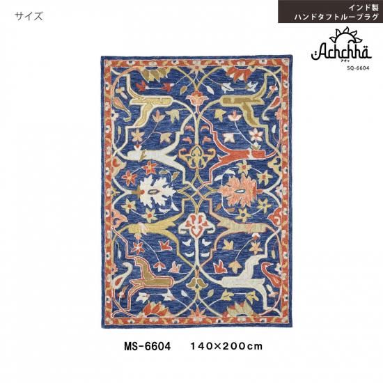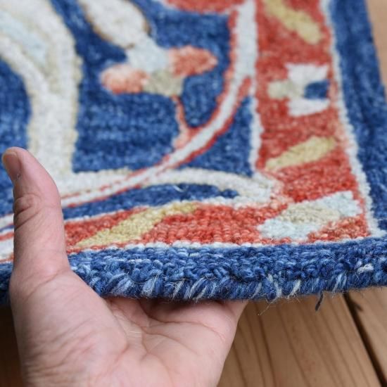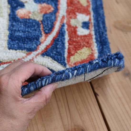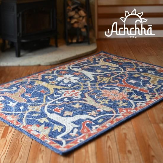 アチャは、インドで生産されたハンドタフトループラグです。品質とデザインにこだわったウール100%で作られ、パール部に綿布仕上げを施し、耐久性に優れています。