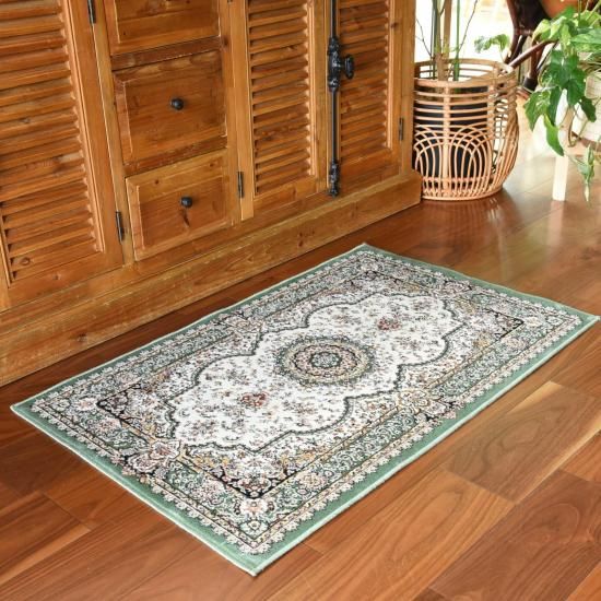 ペルシャ絨毯の伝統柄をやさしくアレンジしたモケット織の玄関マットです。