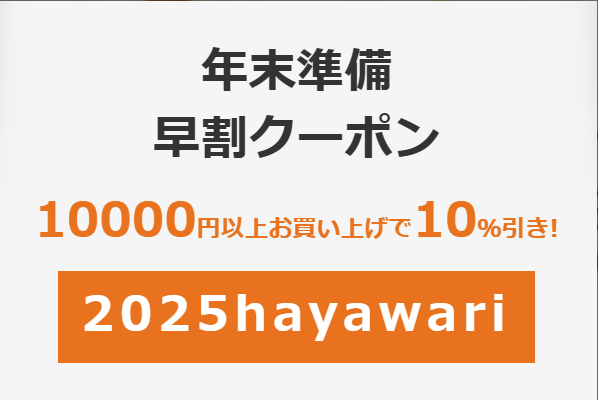 年末準備 早割クーポン|1万円以上で10%OFF(〜12/21)