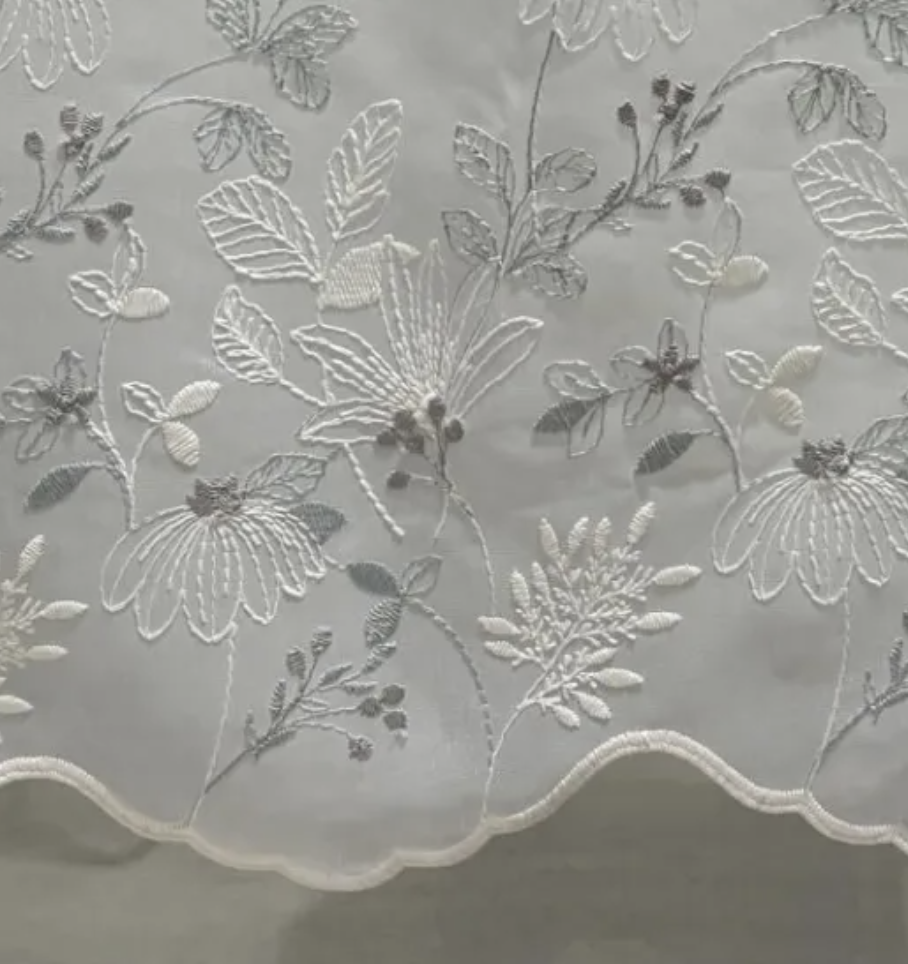 裾にデザイン性のある曲線が美しい、洗える刺繍レースカーテンです。