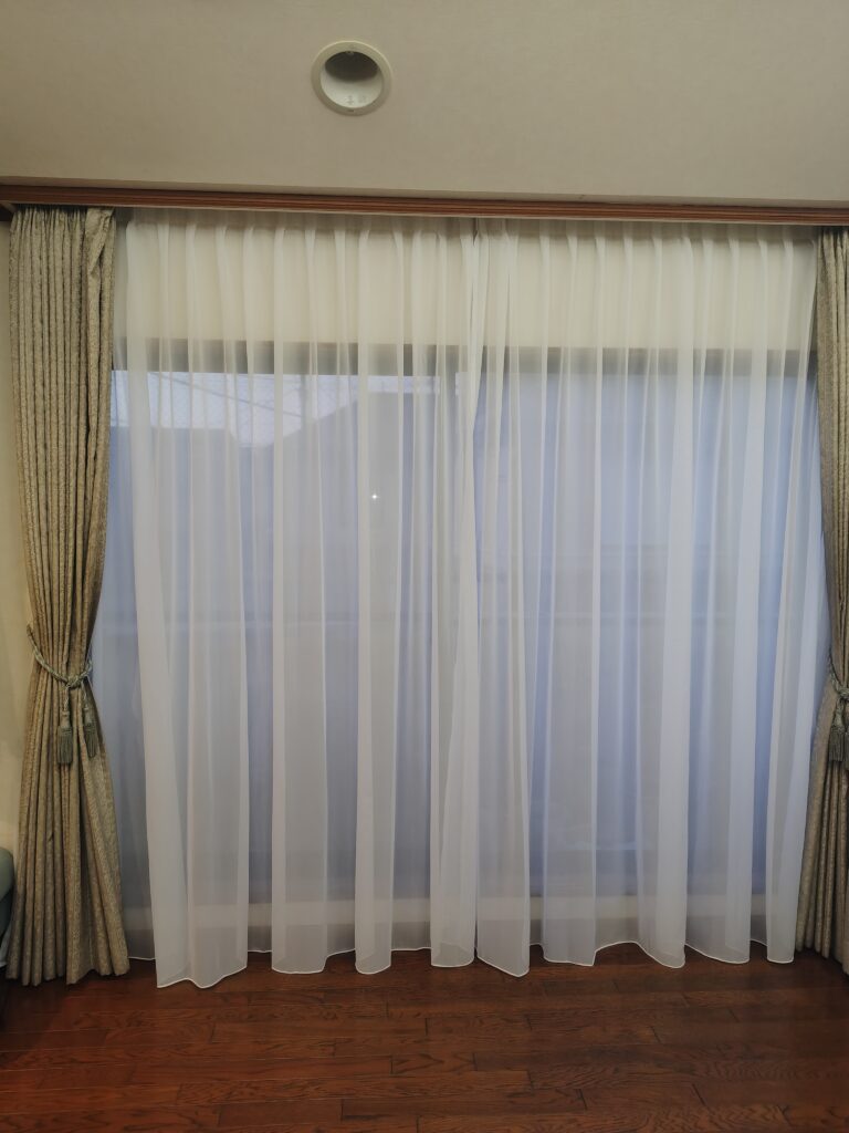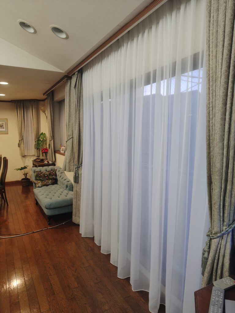 大きな窓に今回お求めのボイルカーテンが映えて、大変素敵ですね!
